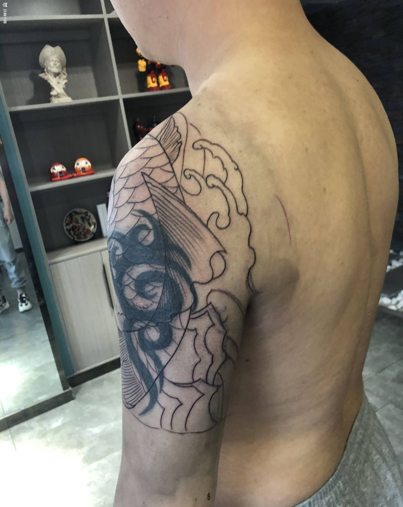 • 纹身吧推荐的披肩图腾半胛纹身图案作品展示