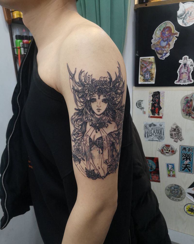 当前位置: 首页 >湖北省十堰市纹身店-刺魂纹身总店纹身图案>近期店内作品纹身图片_手臂新传统纹身图案