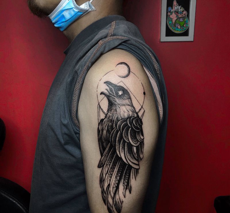 • 纹身吧推荐的披肩图腾半胛纹身图案作品展示