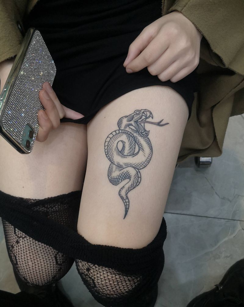 • T网红王老大花腿龙纹身图片_腿部新传统纹身图案
