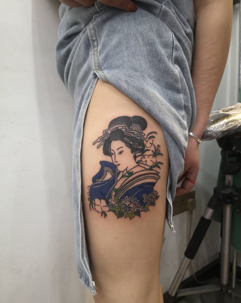 • T网红王老大花腿龙纹身图片_腿部新传统纹身图案