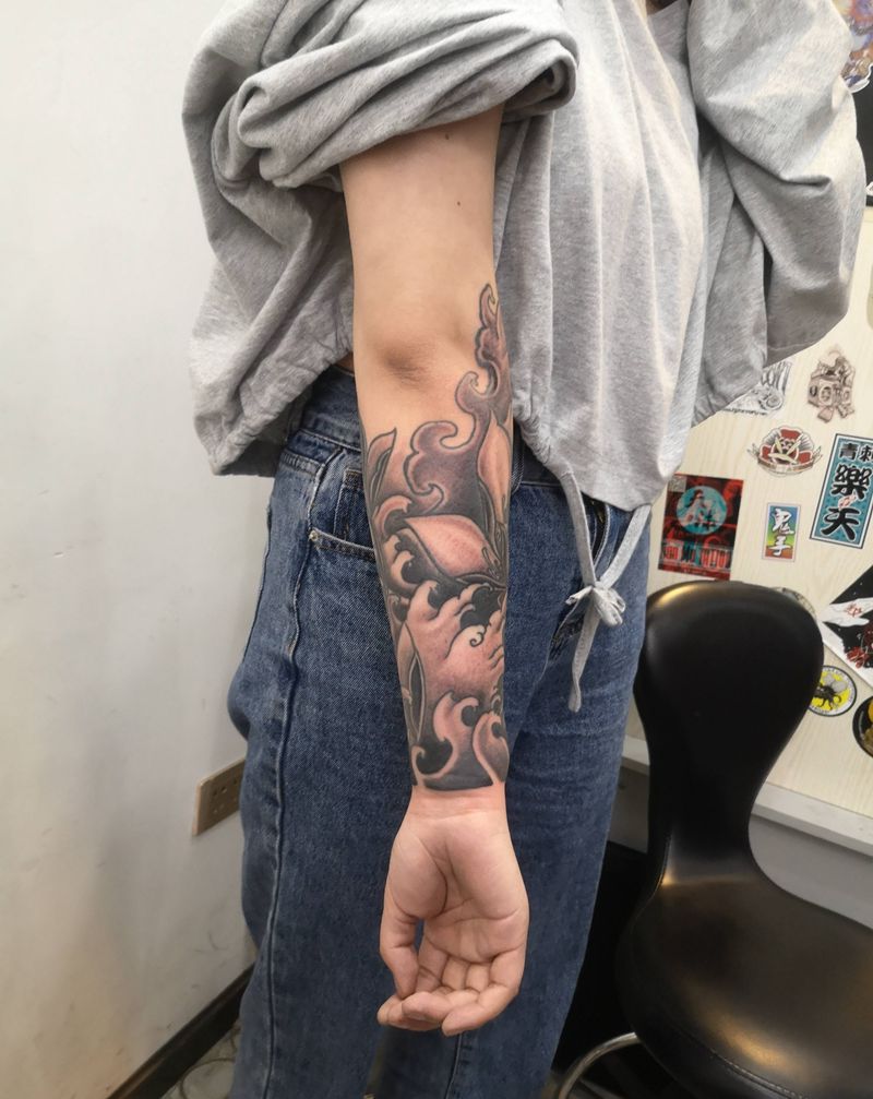 当前位置: 首页 >湖北省十堰市纹身店-刺魂纹身总店纹身图案>近期店内作品纹身图片_手臂新传统纹身图案