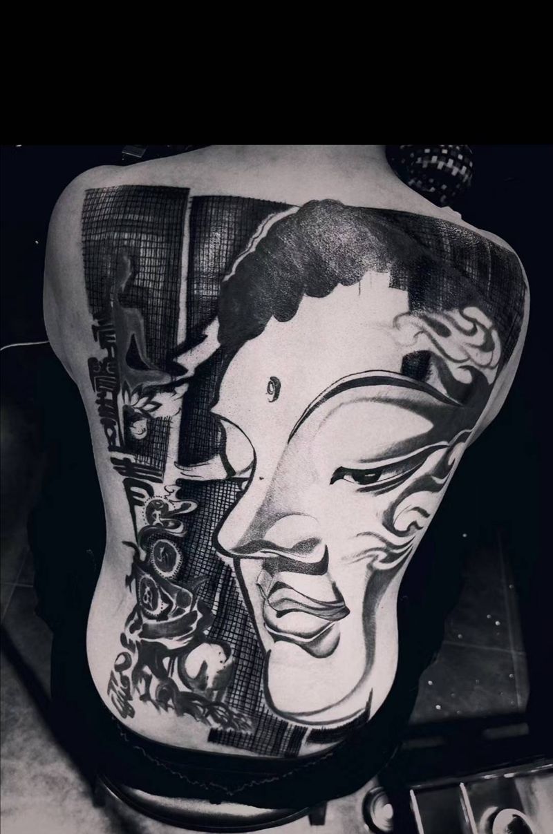 黑灰满背纹身图案