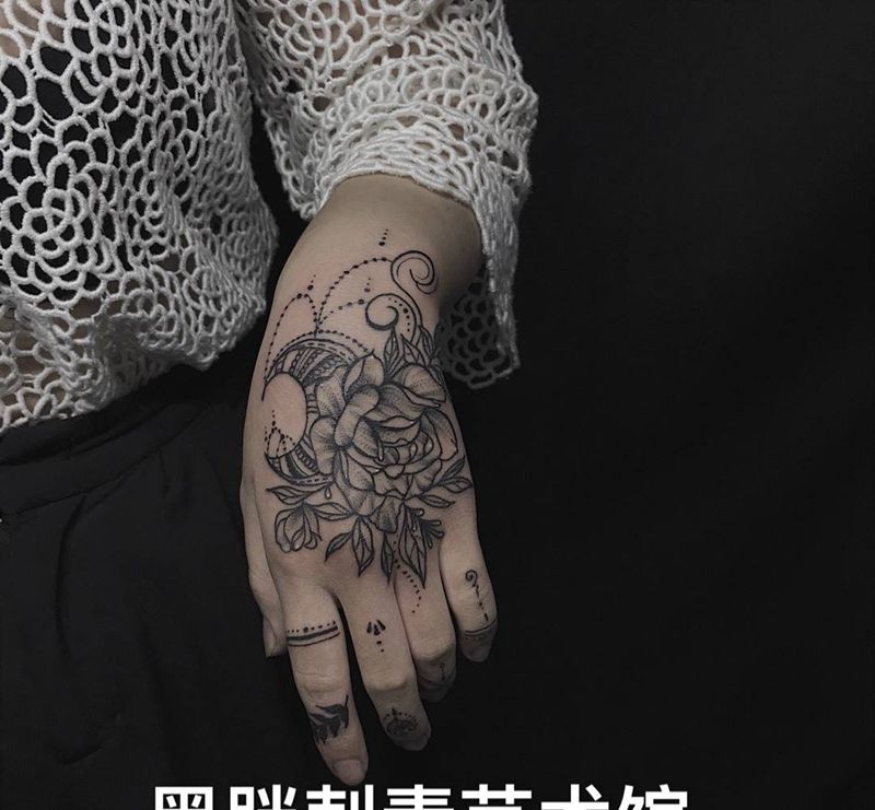 • 手背潮流时尚的玫瑰花眼睛纹身图案