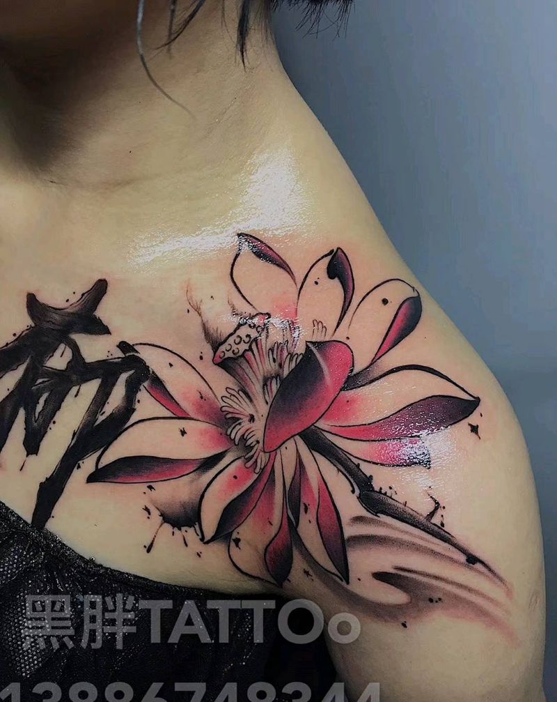 当前位置: 首页 >湖北省宜昌市纹身店-黑胖刺青纹身图案>水墨莲花,字纹身图片