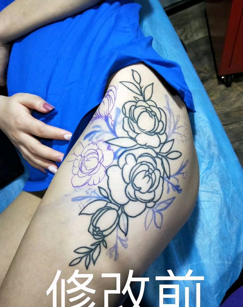 大腿花修改纹身图片