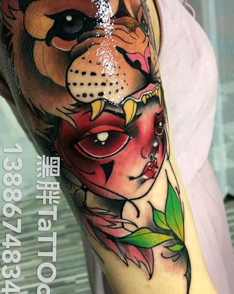 当前位置: 首页 >湖北省宜昌市纹身店-黑胖刺青纹身图案>美女与野兽纹身图片