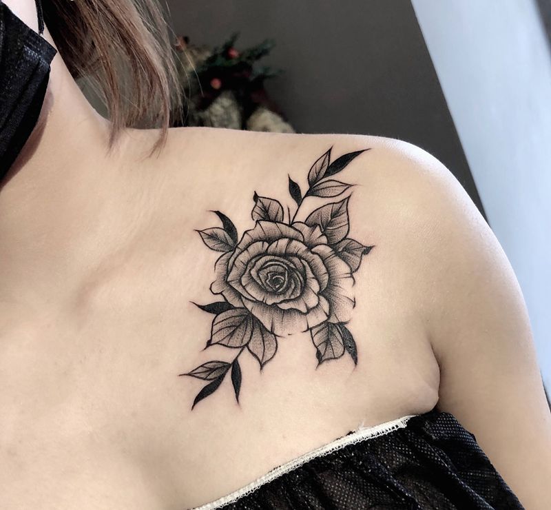 素花纹身图片_肩部纹身图案