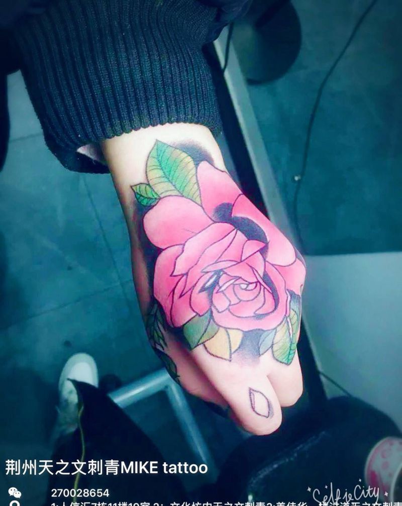 • 手背潮流时尚的玫瑰花眼睛纹身图案