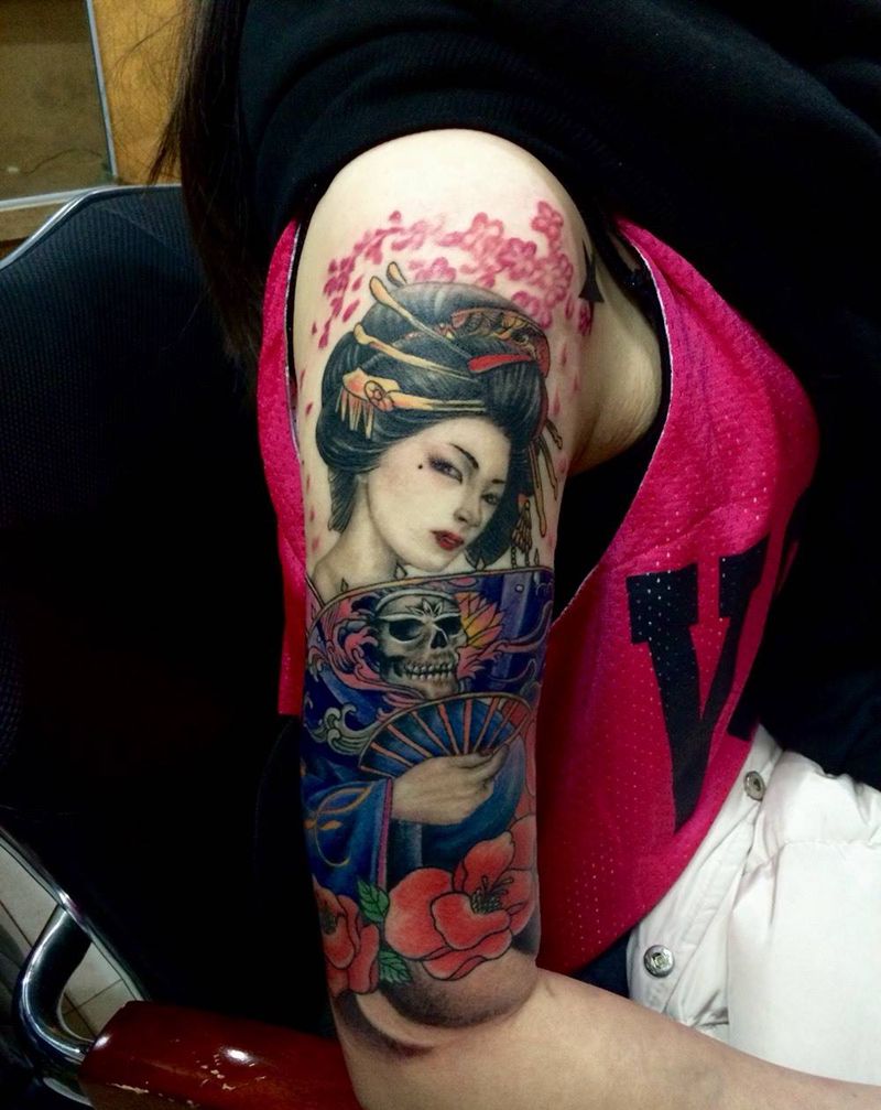 • 女性大花胸纹身_43张霸气漂亮的女性大花胸纹身图案作品