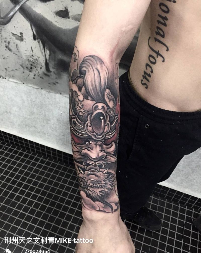 当前位置: 首页 >湖北省荆州市纹身店-文刺青纹身图案>鬼武士头纹身图片_成品手臂传统人物鬼神宗教纹身图案