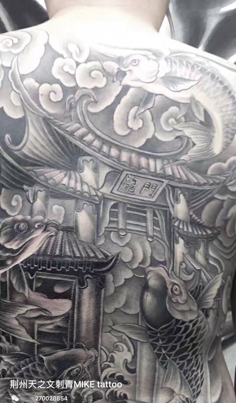 当前位置: 首页 >湖北省荆州市纹身店-文刺青纹身图案>龙门纹身图片_成品背部传统动物纹身图案