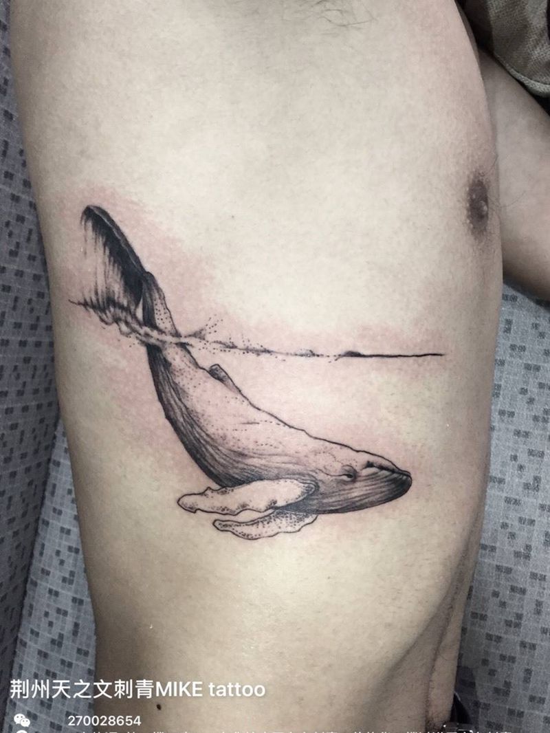 • T网红王老大花腿龙纹身图片_腿部新传统纹身图案