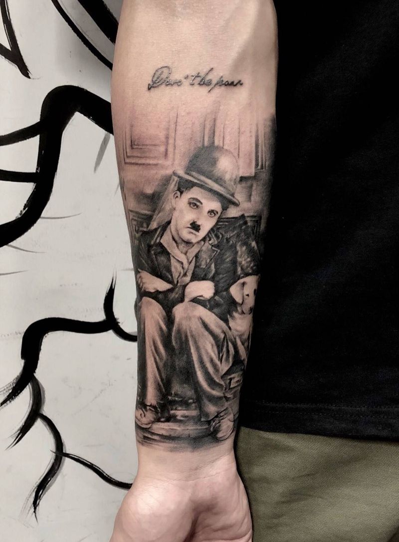 喜剧大师卓别林纹身图片_成品手臂欧美写实肖像人物原创纹身图案