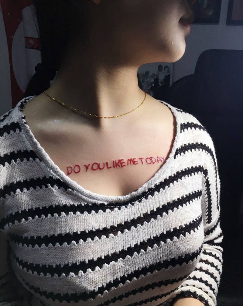 • T关于私处得爱!纹身图片_成品腹部清新字符图腾纹身图案