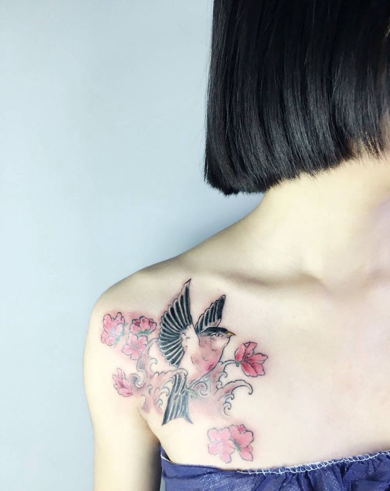 喜鹊纹身图片_成品肩部传统动物荆州唯刺青纹身图案