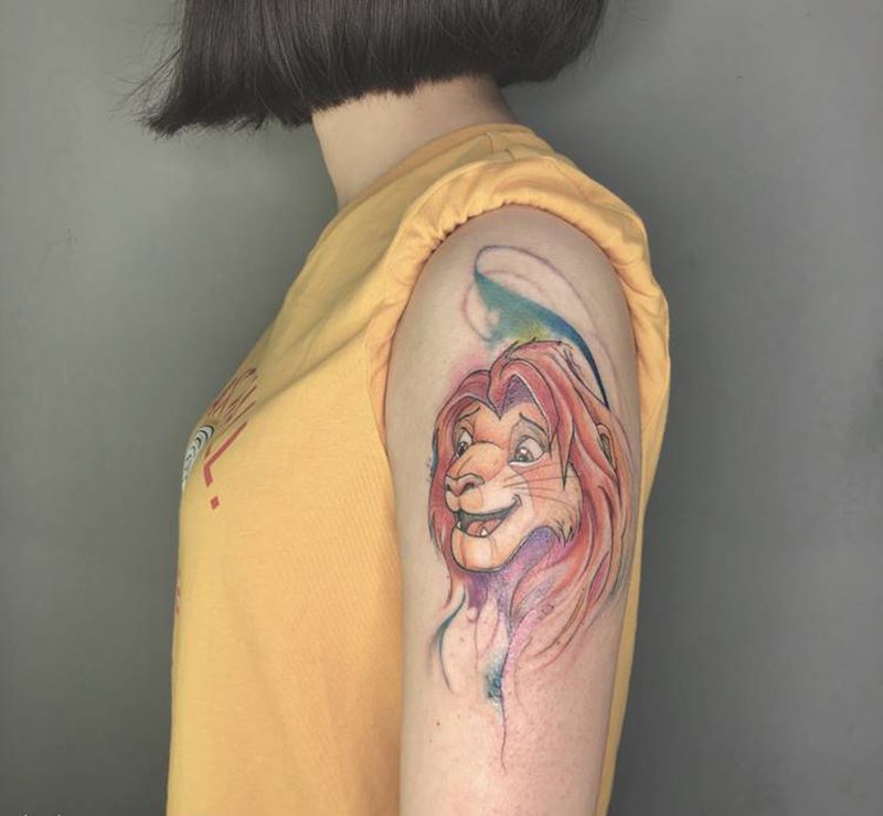 辛巴纹身图片_手臂水彩纹身图案