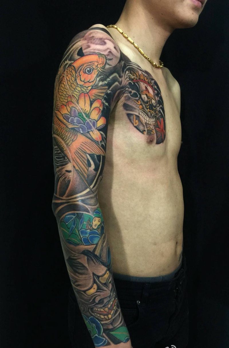 当前位置: 首页 >湖北省省直辖纹身店-缘之梦纹身纹身图案>鲤鱼般若花臂纹身图片