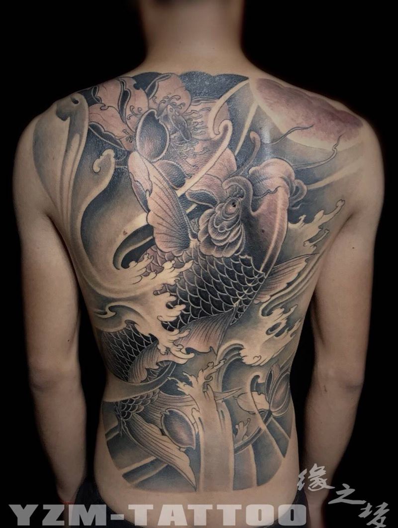 锦鲤纹身图片_成品背部传统动物纹身图案