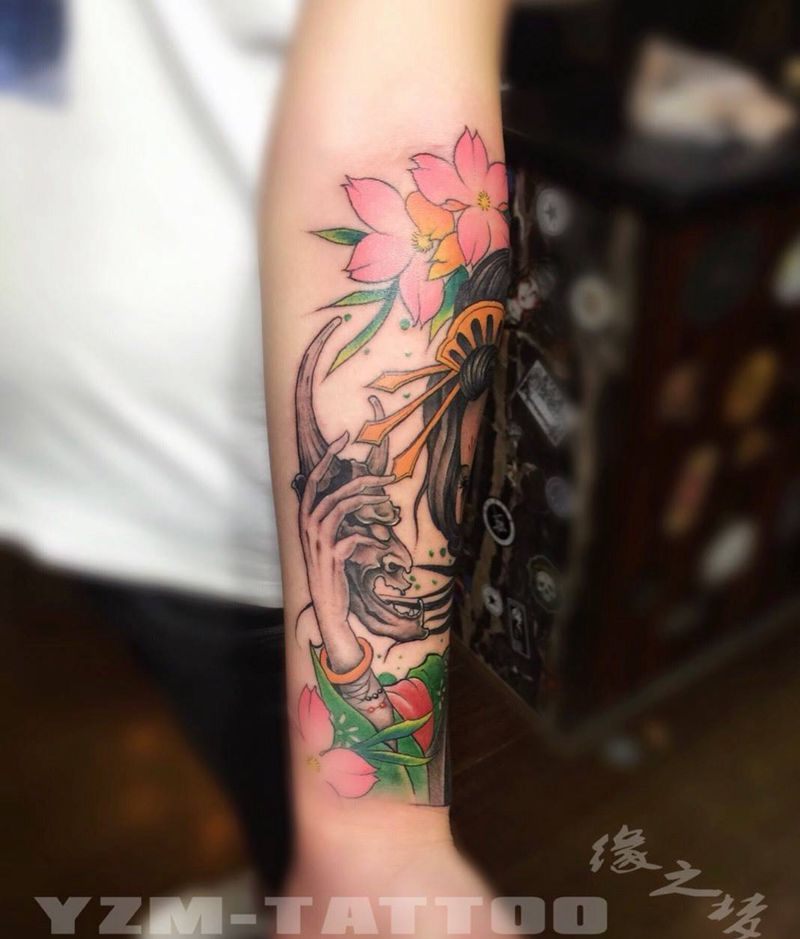 当前位置: 首页 >湖北省省直辖纹身店-缘之梦纹身纹身图案>艺妓&般诺纹身图片_传统人物手臂成品纹身图案