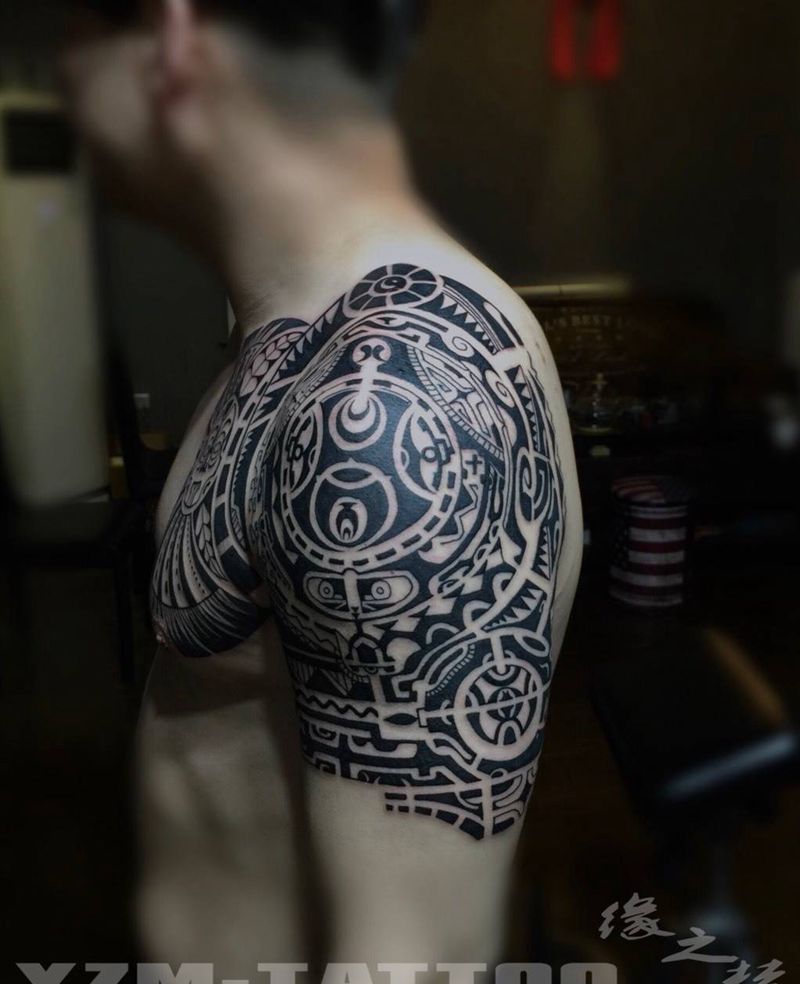 • 纹身吧推荐的披肩图腾半胛纹身图案作品展示