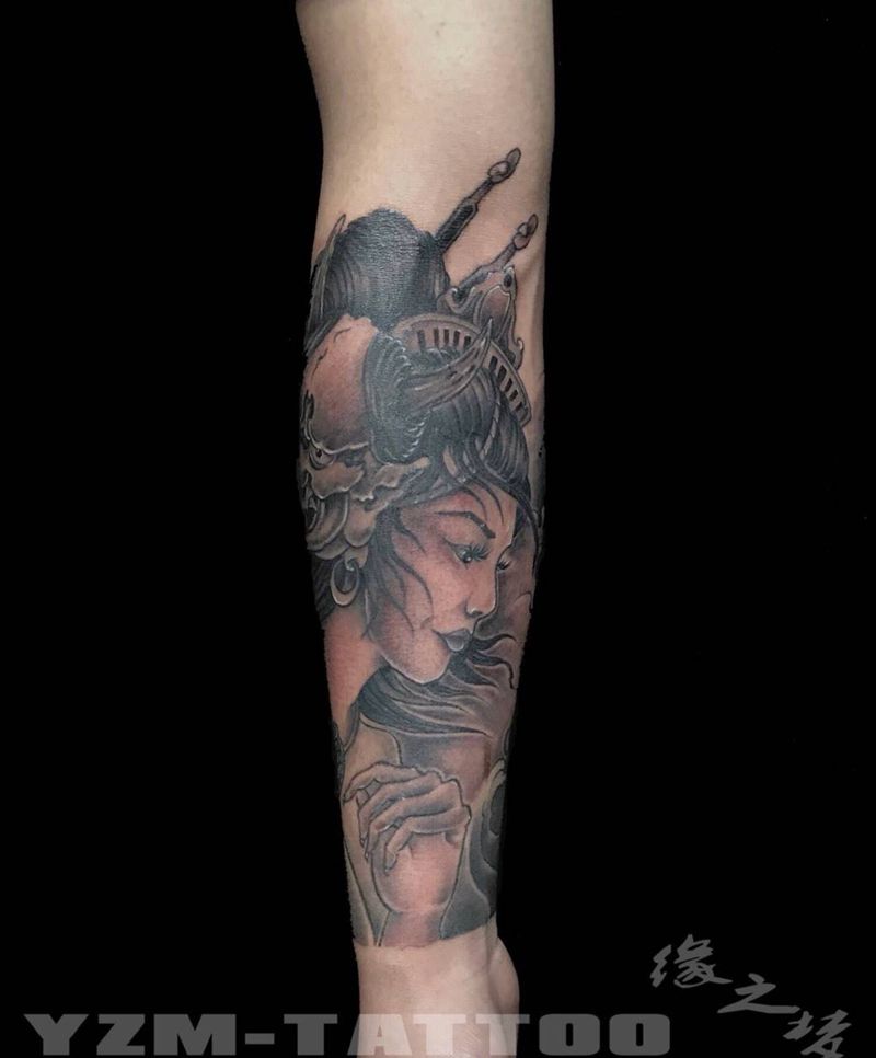 般诺艺妓,包小臂!纹身图片_成品手臂传统人物纹身图案