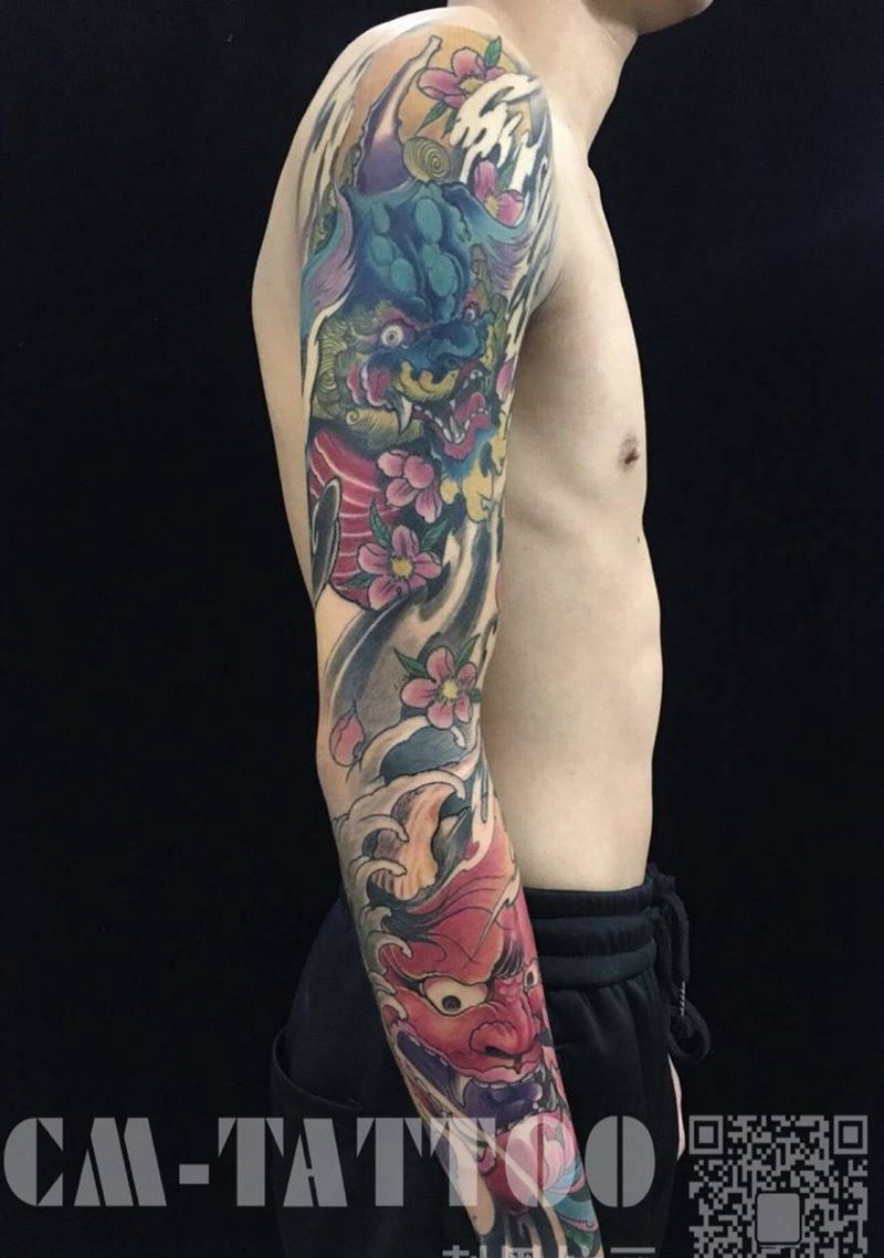 当前位置: 首页 >湖北省省直辖纹身店-刺墨纹身纹身图案>唐狮配般若纹身图片