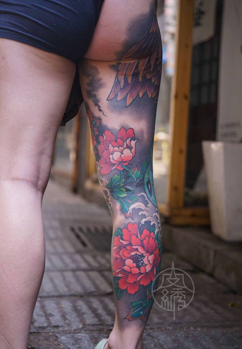 当前位置: 首页 >湖南省长沙市纹身店-人皮绣刺青工作室纹身图案>花腿纹身图片_腿部新传统纹身图案