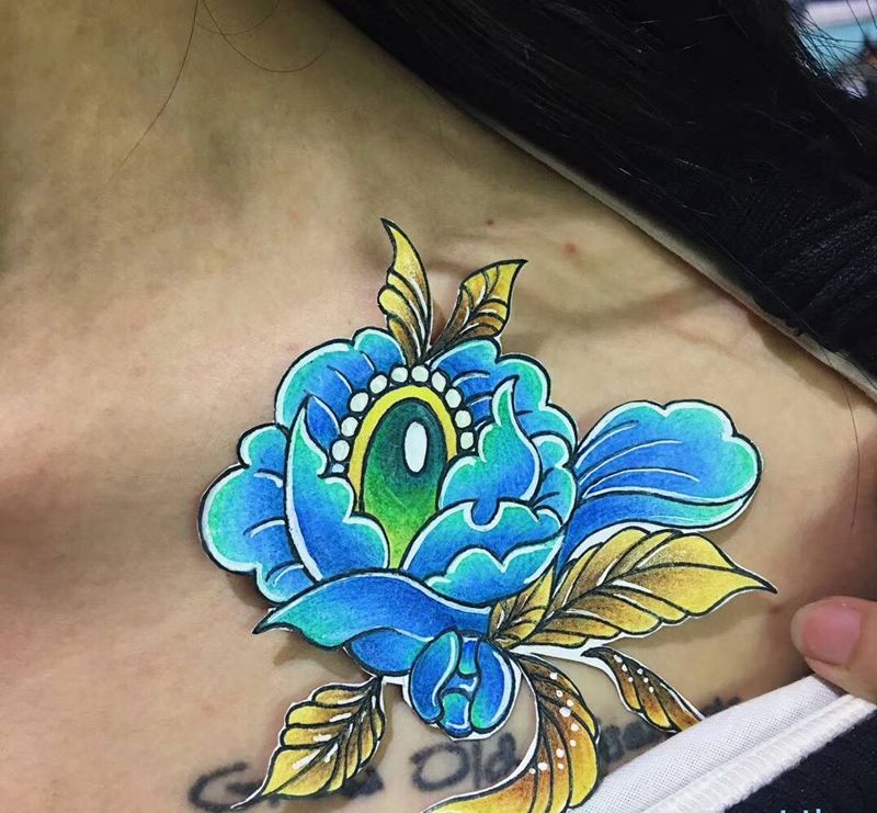 • 女性大花胸纹身_43张霸气漂亮的女性大花胸纹身图案作品