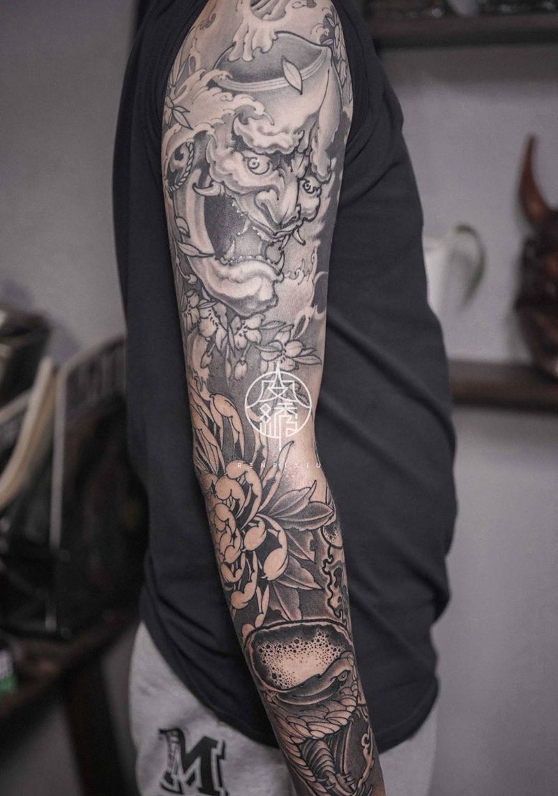 当前位置: 首页 >湖南省长沙市纹身店-人皮绣刺青工作室纹身图案>一条新传统花臂,阿龙作品纹身图片_手臂手部新传统纹身图案