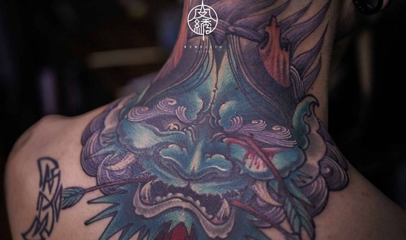 当前位置: 首页 >湖南省长沙市纹身店-人皮绣刺青工作室纹身图案>夜叉纹身图片_颈部新传统纹身图案