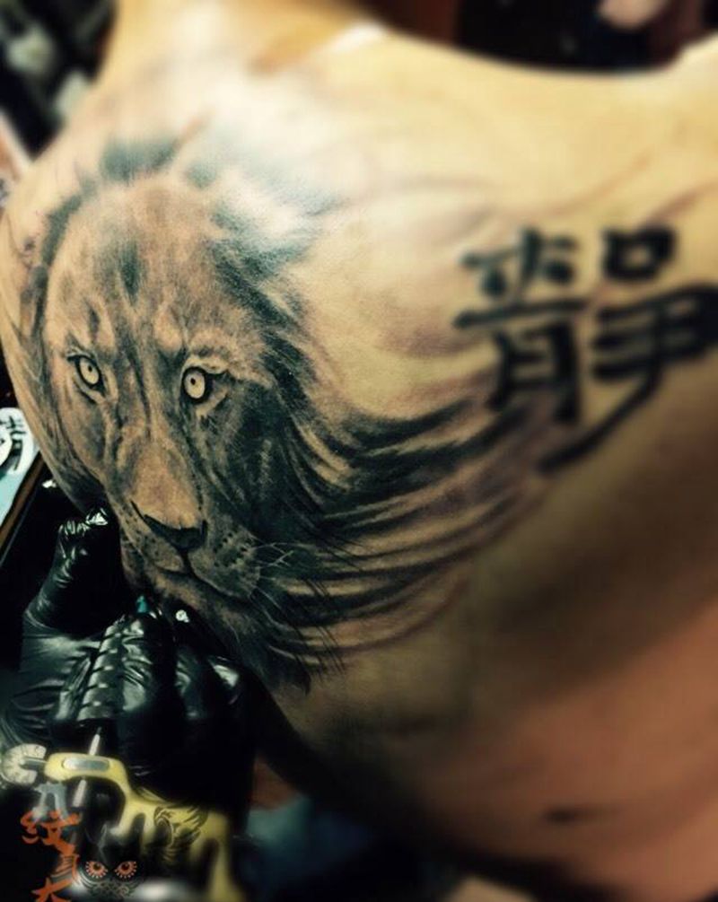 当前位置: 首页 >湖南省长沙市纹身店-人皮绣刺青工作室纹身图案>狮子纹身图片_写实欧美动物背部纹身图案