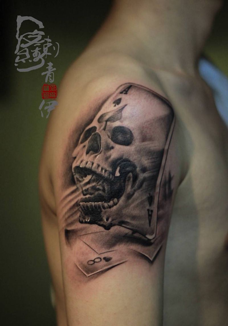 当前位置: 首页 >湖南省长沙市纹身店-人皮绣刺青工作室纹身图案>骷髅纹身图片_欧美鬼神手臂手部纹身图案