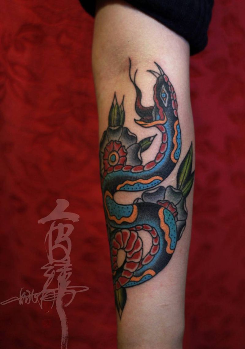当前位置: 首页 >湖南省长沙市纹身店-人皮绣刺青工作室纹身图案>遮盖 蛇纹身图片_手臂手部动物纹身图案