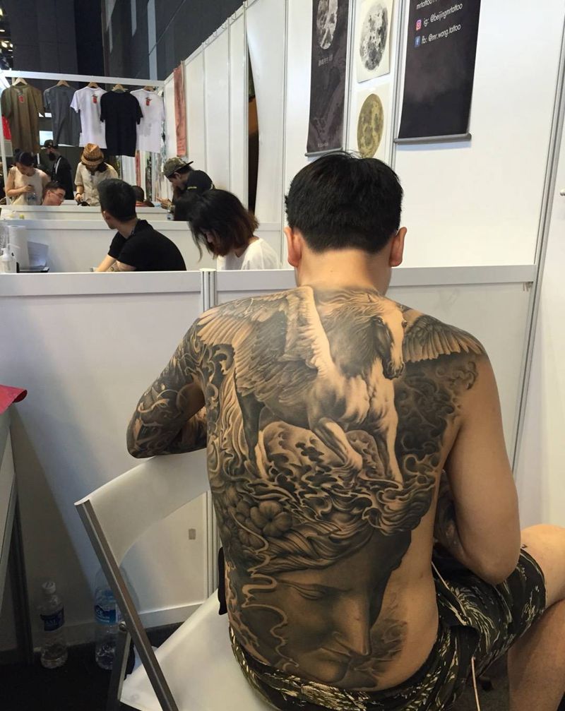 • 黑灰满背纹身图案