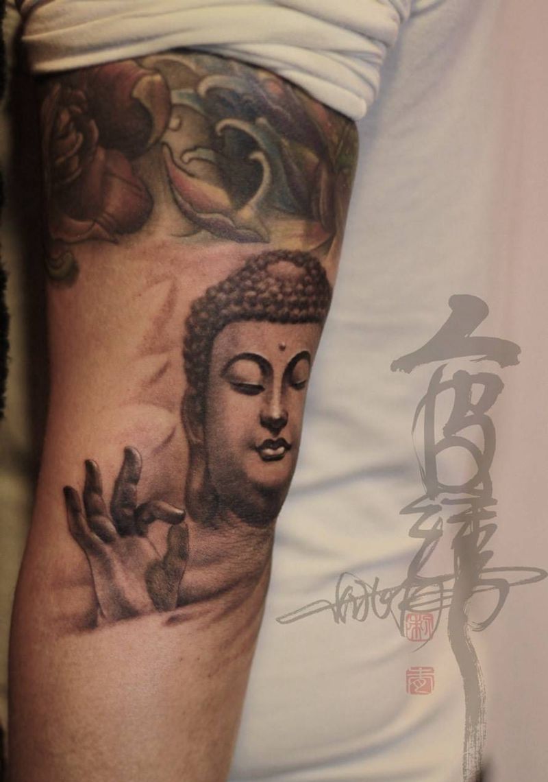 当前位置: 首页 >湖南省长沙市纹身店-人皮绣刺青工作室纹身图案>佛纹身图片_手臂手部传统写实肖像人物宗教纹身图案