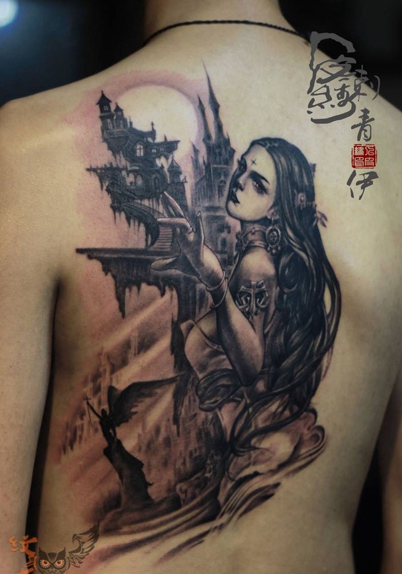当前位置: 首页 >湖南省长沙市纹身店-人皮绣刺青工作室纹身图案>遮盖纹身图片_欧美背部手稿写实人物原创纹身图案