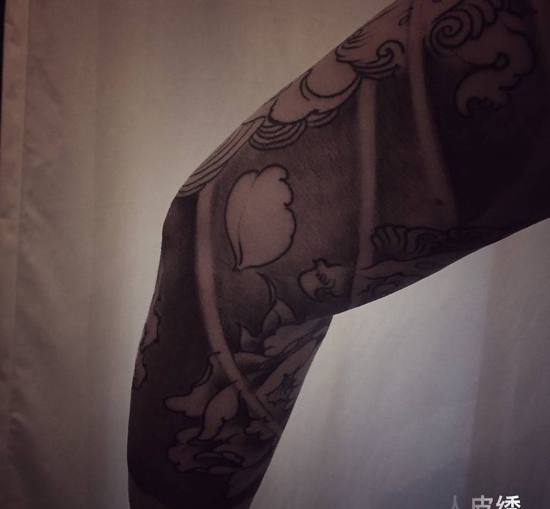 当前位置: 首页 >湖南省长沙市纹身店-人皮绣刺青工作室纹身图案>唐狮牡丹花臂纹身图片_手臂传统宗教原创手稿纹身图案