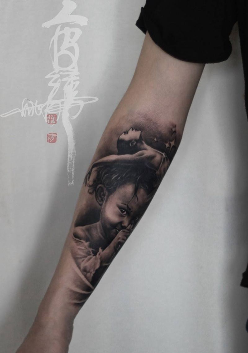 • T家庭图,一家四口生日纪念!纹身图片_手臂纹身图案