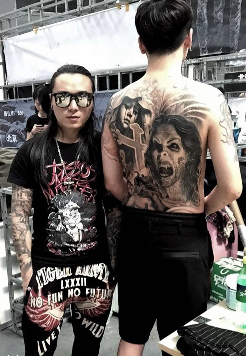 黑灰满背纹身图案