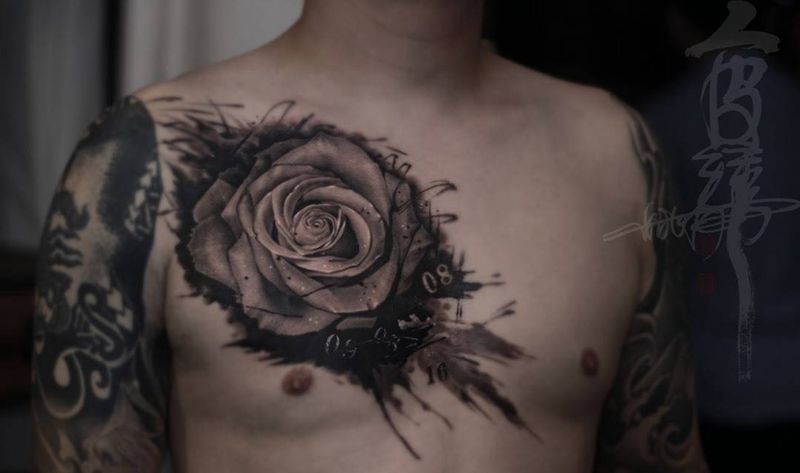 当前位置: 首页 >湖南省长沙市纹身店-人皮绣刺青工作室纹身图案>写实玫瑰纹身图片_成品胸部写实欧美植物纹身图案