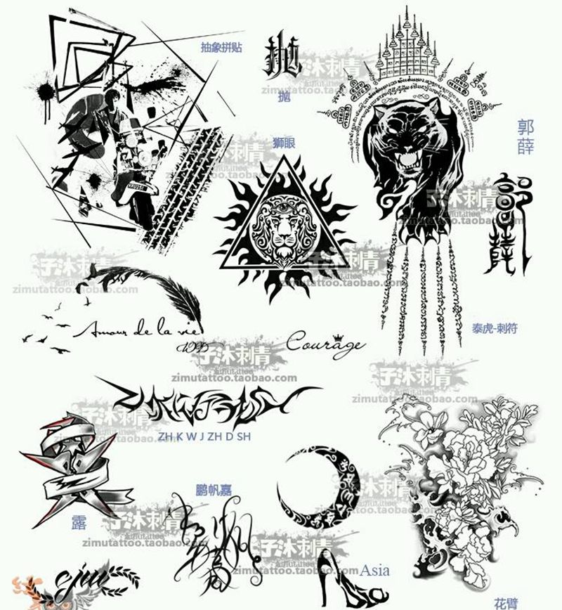 客户定制 纹身设计纹身图片_欧美传统清新字符动物人物静物图腾情侣原创纹身图案