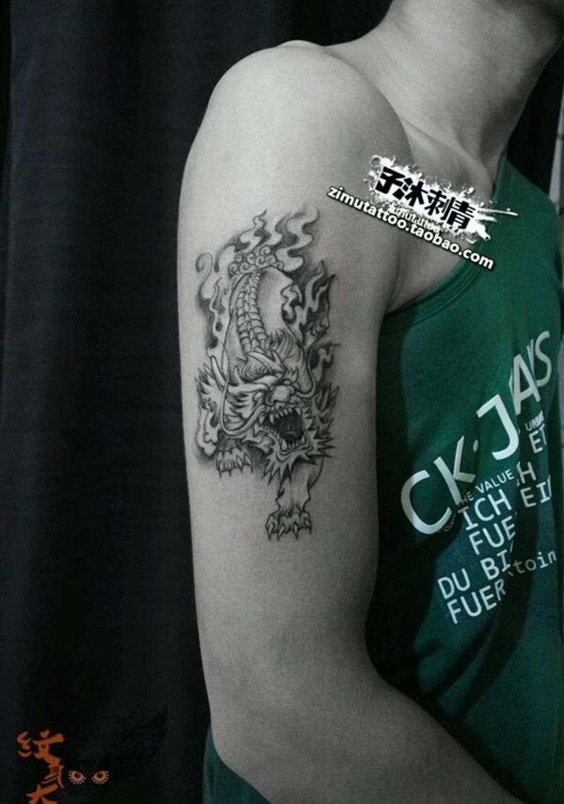 • T网红王老大花腿龙纹身图片_腿部新传统纹身图案