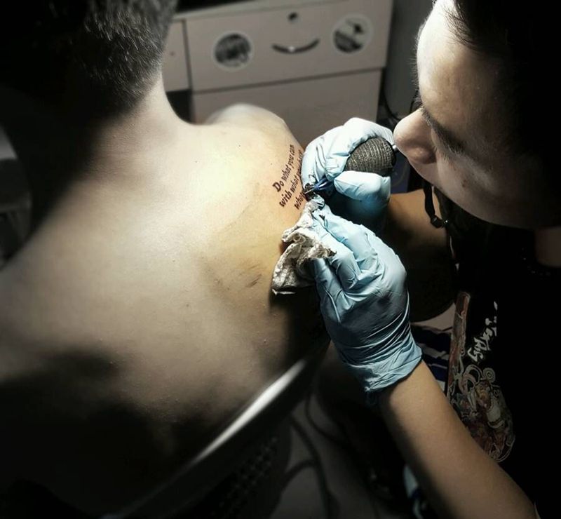 当前位置: 首页 >湖南省长沙市纹身店-子沐刺青艺术纹身工作室纹身图案>在你所处的位置,用你所有的资源纹身图片_背部字符成品纹身图案