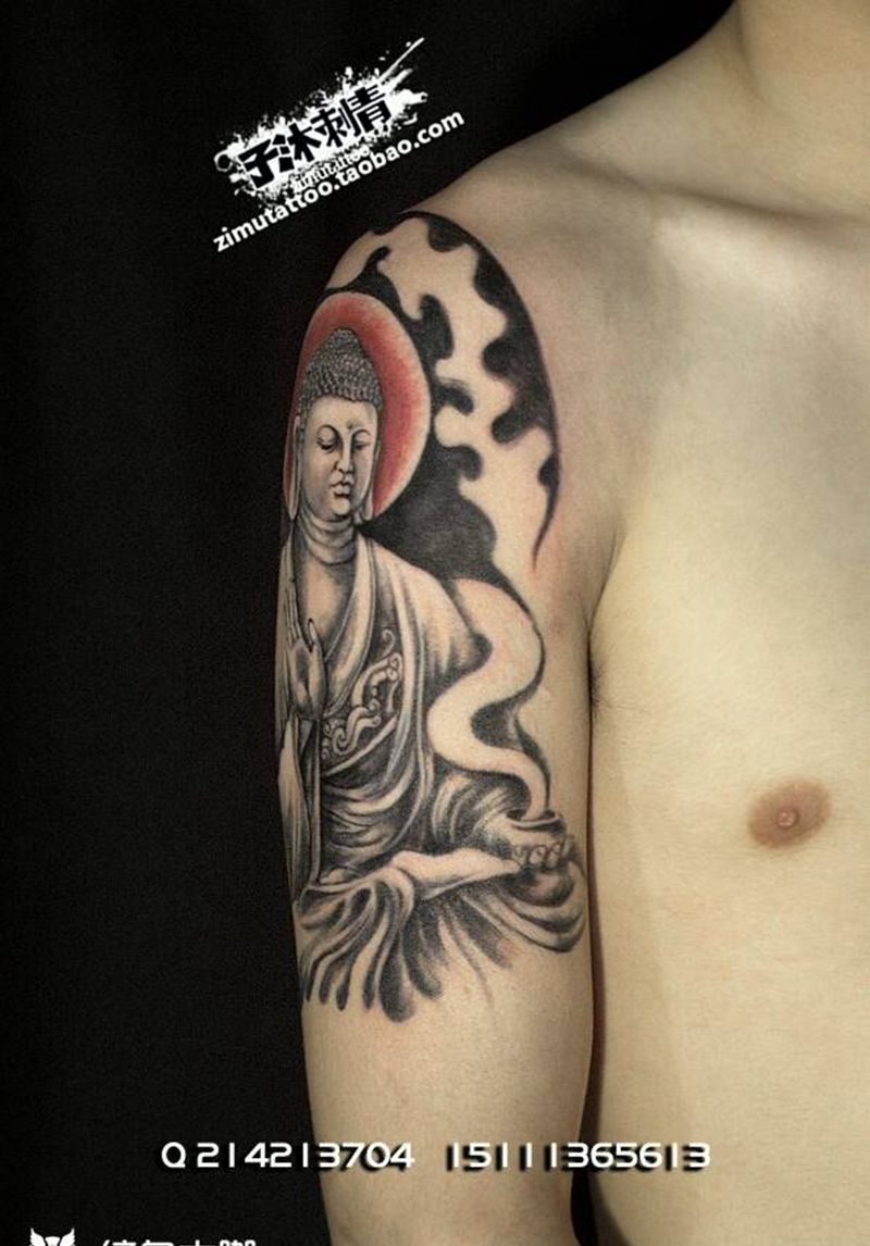 佛法无边 阿弥陀佛纹身图片_手臂肖像写实国画人物鬼神宗教成品纹身图案