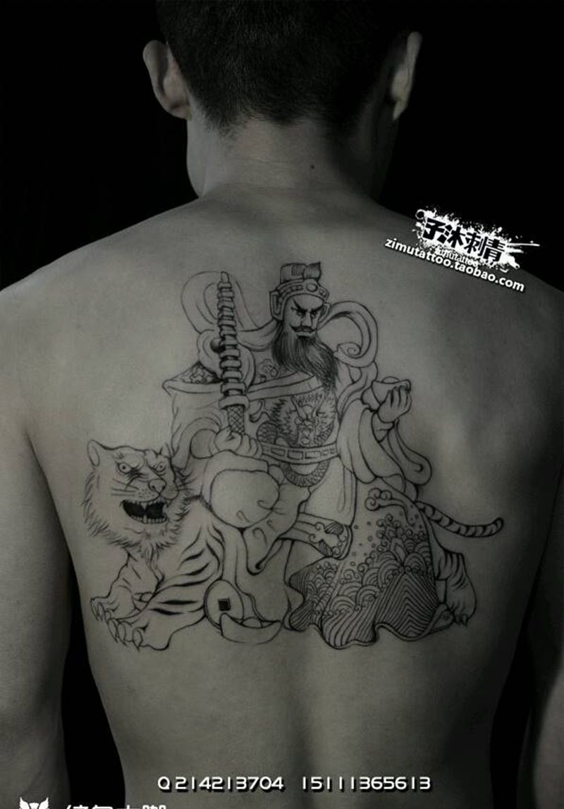 未完成 财神 赵公明纹身图片_背部欧美传统肖像人物鬼神宗教成品纹身图案