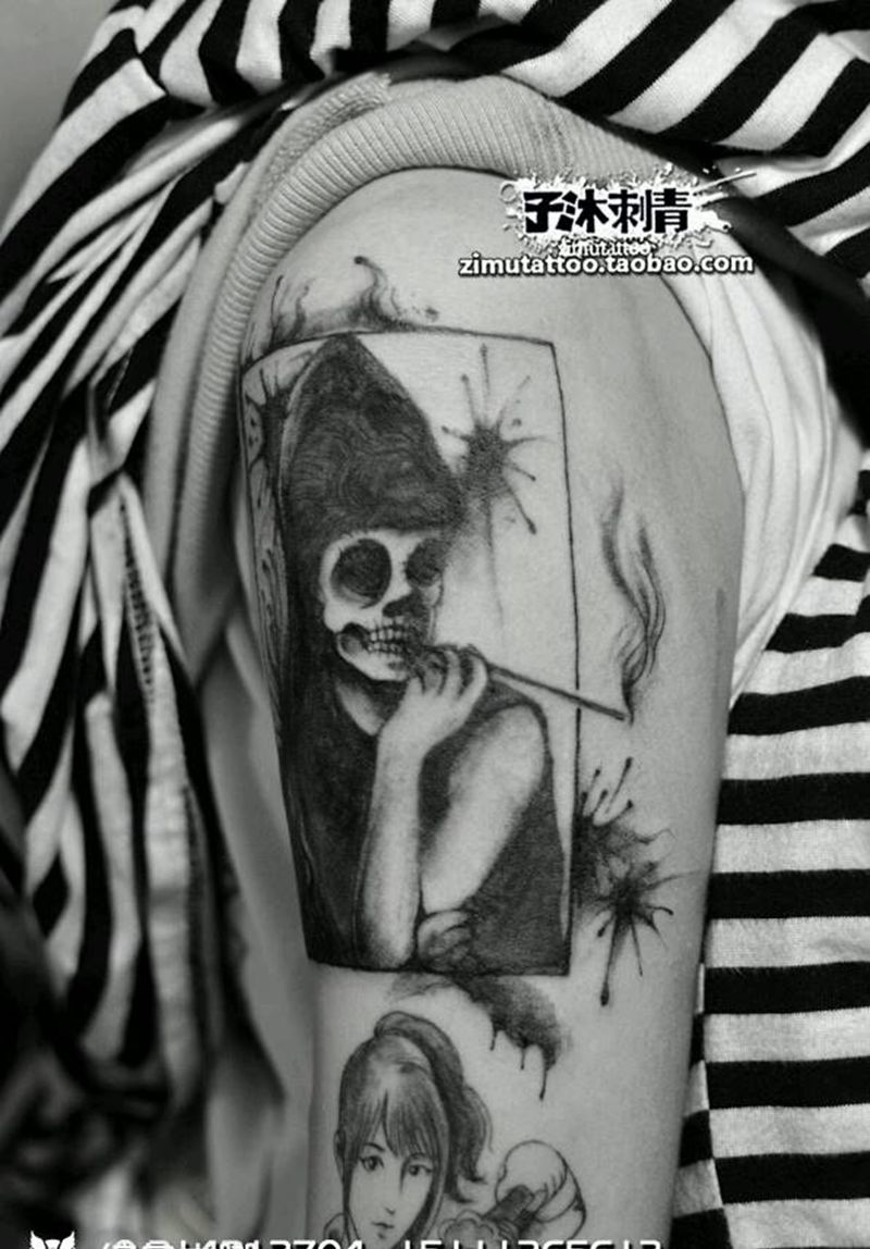 当前位置: 首页 >湖南省长沙市纹身店-子沐刺青艺术纹身工作室纹身图案>泼墨死神的烟斗 耗时1.6纹身图片_手臂成品纹身图案