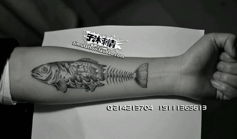 鱼的世界耗时2.0纹身图片_手臂欧美动物成品纹身图案
