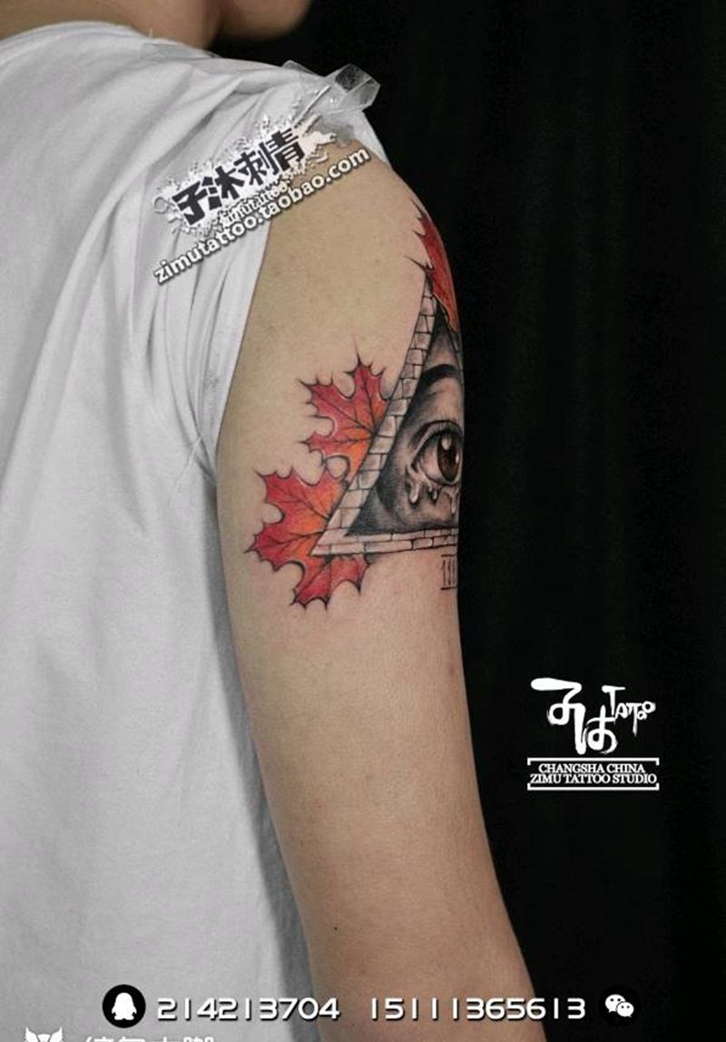 当前位置: 首页 >湖南省长沙市纹身店-子沐刺青艺术纹身工作室纹身图案>耗时3.1 枫叶与泪 上帝之眼纹身图片_成品纹身图案