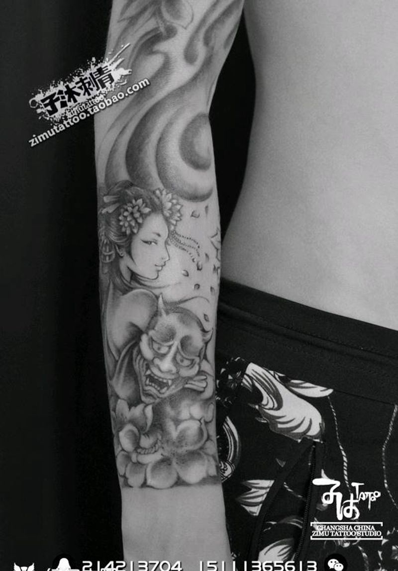 小臂 艺妓与花纹身图片_手臂传统清新成品纹身图案